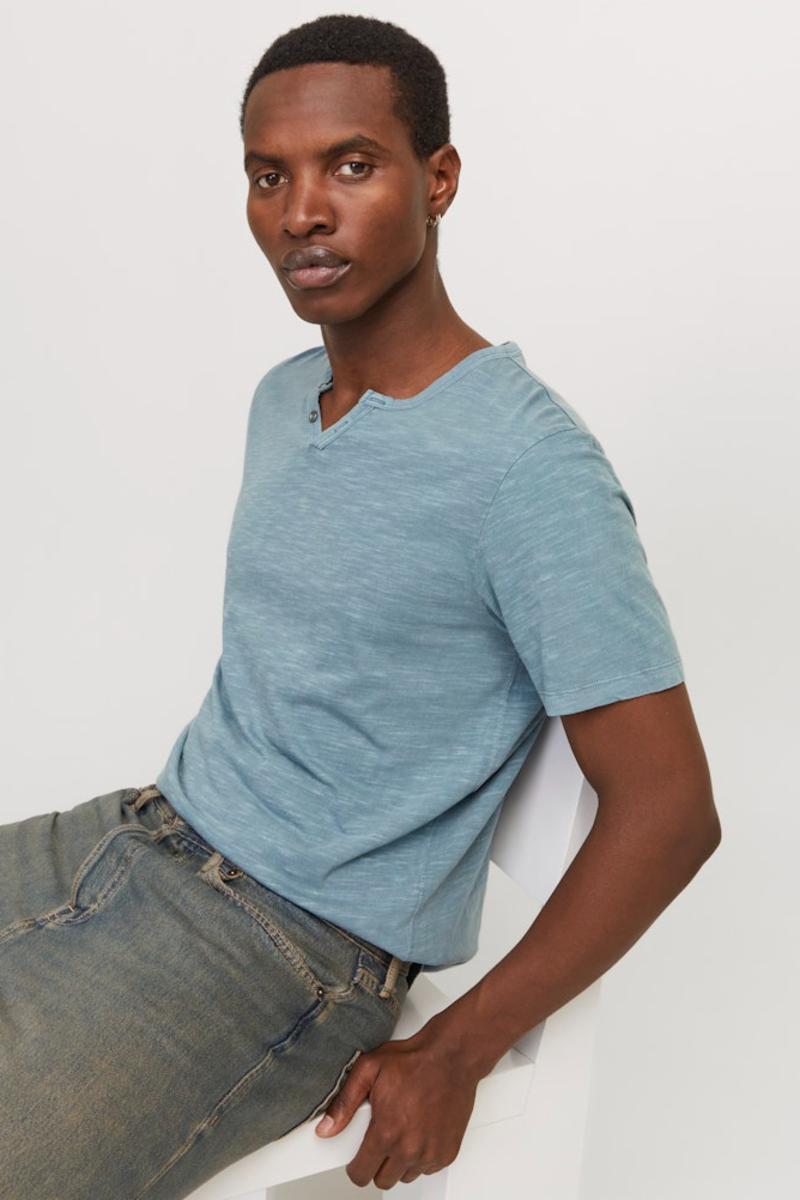 Klassisk, ensfarget T-skjorte. Slub-stoff laget av to forskjellige garn for å skape en slub-tekstur.