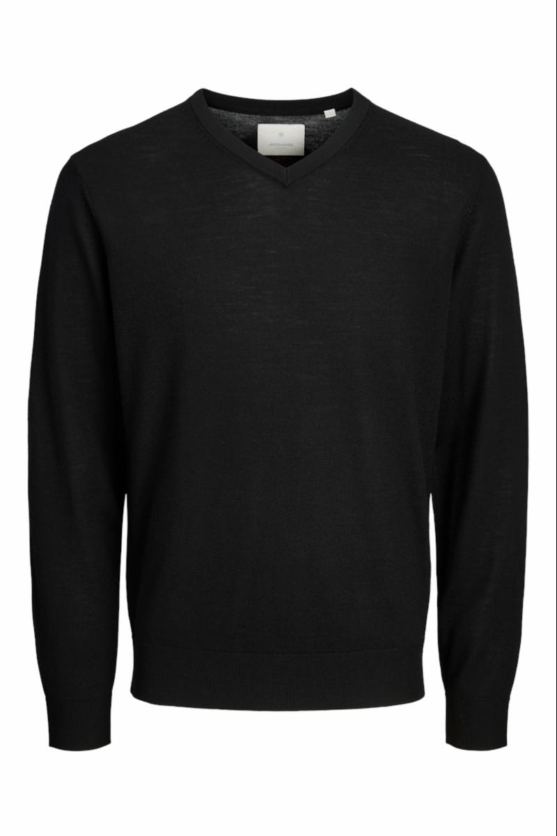 V-HALS STRIKKEGENSER I 100% MERINOULL - SVART -HR12281747