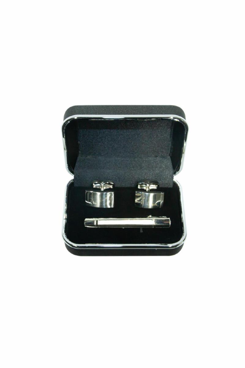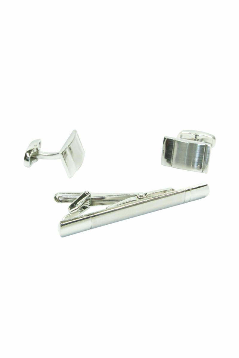 SETT MED MANSJETTKNAPPER OG SLIPSNÅL - SØLVFARGET