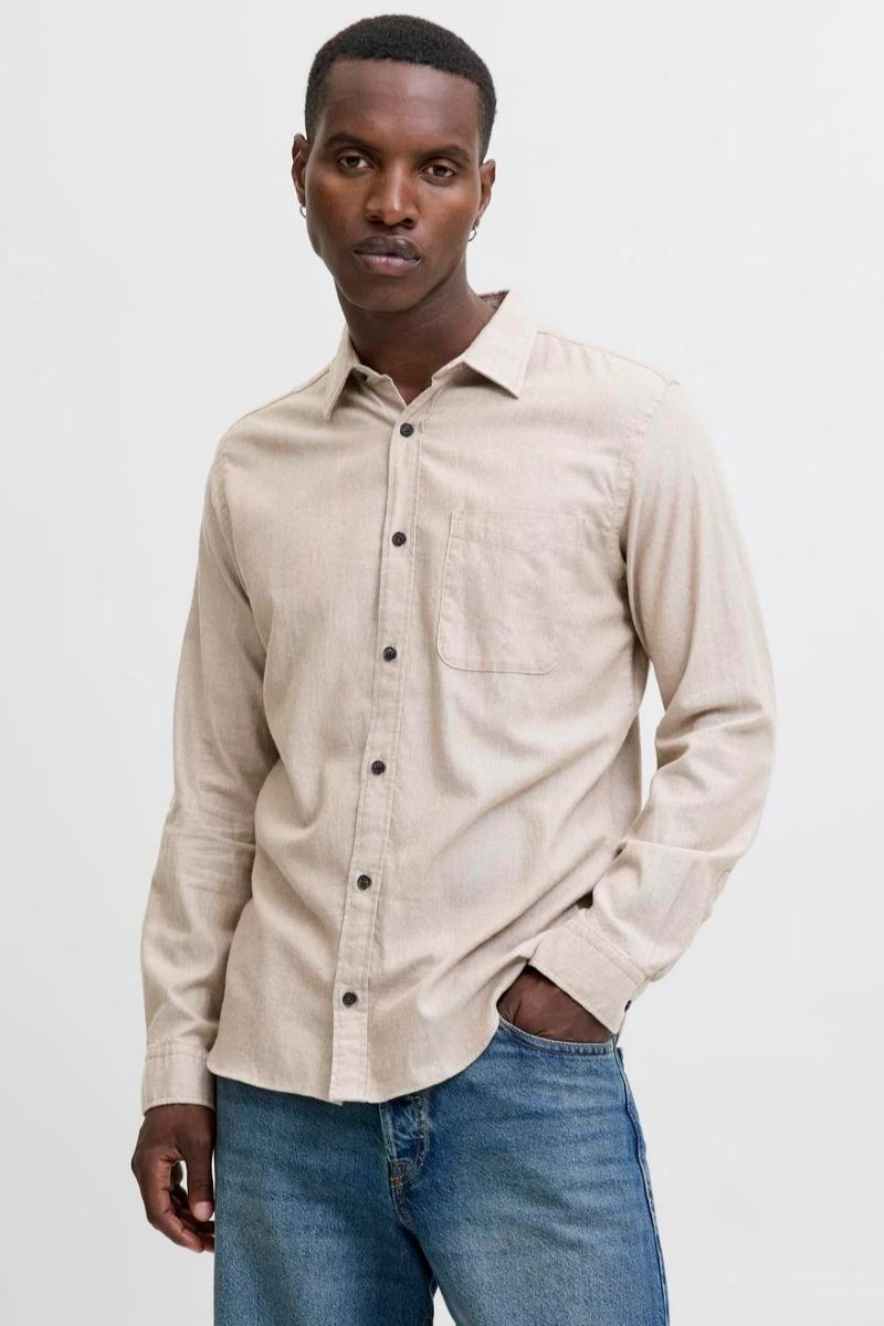 CLASSIC MELANGE COMFORT FIT SKJORTE - BEIGE - HR12278416