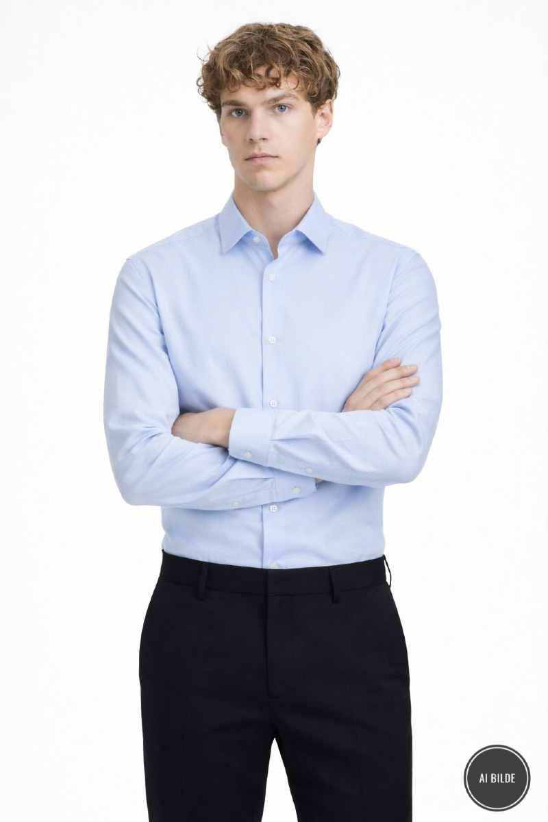 Klassisk dobbyvevd skjorte.