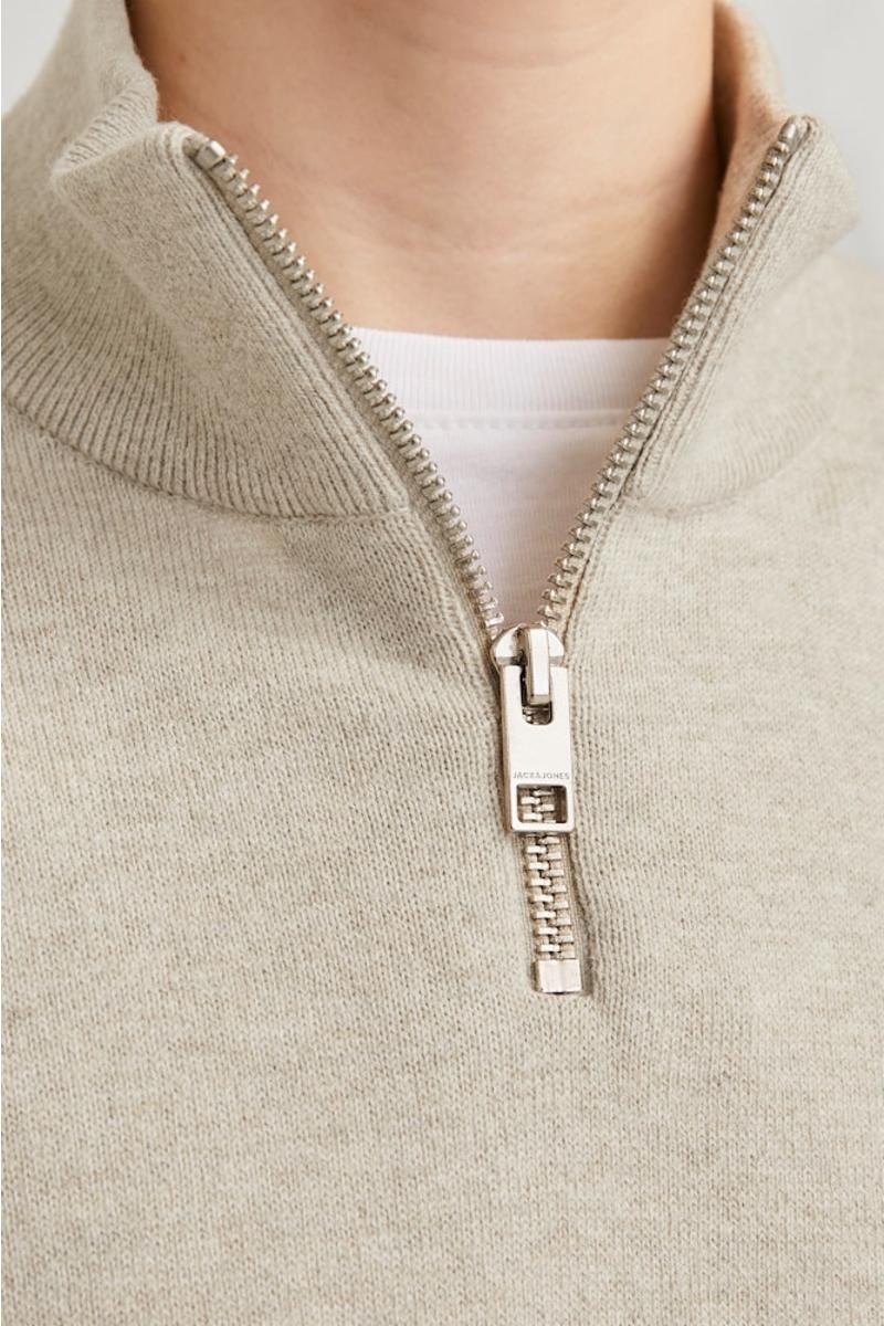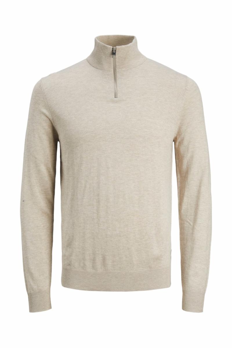 xxx JR EMIL REGULAR HALF-ZIP STRIKKEGENSER - BEIGE -12268772