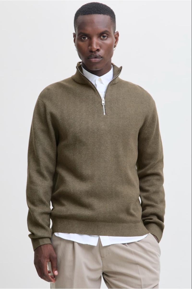 MILANO RELAXED HALF-ZIP STRIKKEGENSER - GRÅBRUN - HR12259664